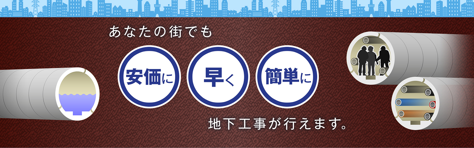 莫大な費用のかかる大規模工事向けの工法だと思われていたシールド工法ですが、一層のコスト削減、工期短縮、環境負荷の低減、維持管理時代への対応を図るために、このシールド工法を進化させた新たなシールド技術「コンパクトシールド工法」が誕生しました。