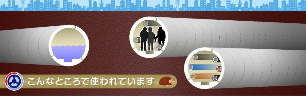 適用工事 コンパクトシールド工事 適用工事 下水道幹線・枝線管路工事 上水道幹線・枝線管路工事 電力・ガス・電線・通信など洞道工事 その他 地下トンネル工事 坑内搬送・敷設・修理工事 適用工事 トンネル内、重量物各種搬送・敷設・修理工事用 狭歪部、重量物各種・輸送工事用